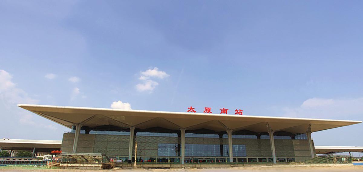 太原南站位于太原市小店區(qū)北營,東臨東山過境高速公路,西接太原武宿國際機(jī)場,南依南環(huán)高速公路,北靠長風(fēng)大街,地處國家級太原高新技術(shù)開發(fā)區(qū)、太原經(jīng)濟(jì)技術(shù)開發(fā)區(qū)及武宿物流區(qū)等三大園區(qū)交叉輻射的核心地段。占地面積45公頃,站房主體結(jié)構(gòu)為地上兩層地下一層,建筑面積約20.06萬平方米,其中客運(yùn)站房建筑面積5.5萬平方米以上,車場規(guī)模為10臺22線,設(shè)計(jì)年發(fā)送旅客量可達(dá)4000萬人次以上。工程投資估算總額約30億元以上,由鐵道部和山西省共同出資建設(shè),是山西省內(nèi)第一座高標(biāo)準(zhǔn)現(xiàn)代化的大型鐵路客運(yùn)站,為太原市標(biāo)志性建筑之一。